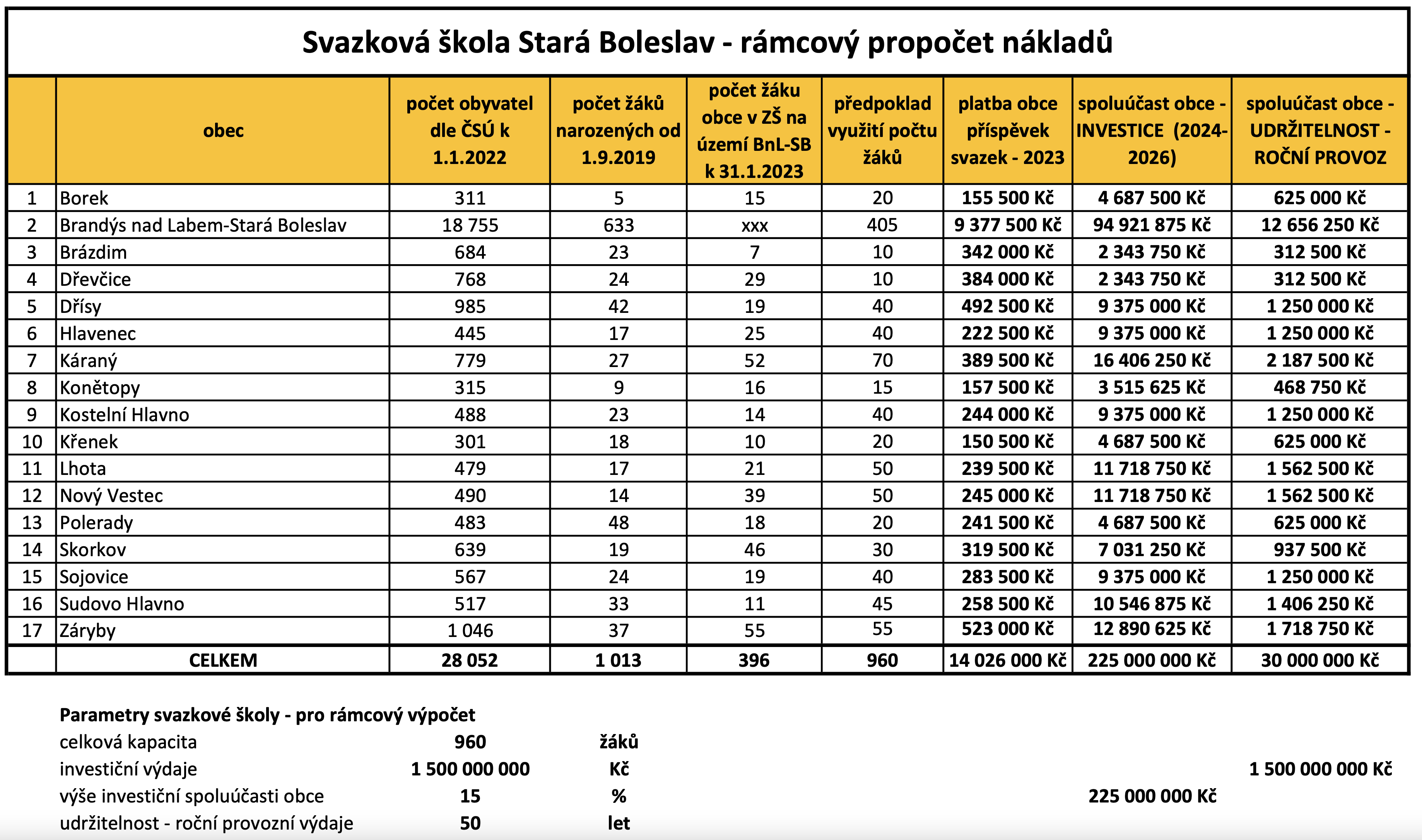 Tohle opozice ví. Sama tvrdí, jak připravovala projekt svazkové školy na pozemku Dřevčic. Ten se nikam ze stádia myšlenky za ta léta neposunul, ale princip financování svazkové školy i svazkové smlouvy opozice musela znát. Přesto jsme se dvě hodiny trápili s tím, abychom pomohli opozici identifikovat základní myšlenky smlouvy, pro kterou by jinak stačilo si ji v podkladech předem přečíst. Přitom je to tak jednoduché. Vzali jsme v potaz počty obyvatel v jednotlivých obcích a podle toho jsme nastřelili, kolik která obec bude mít nárok na počet dětí z kapacity 960 dětí v nové škole. Obcím plyne povinnost za takové místo platit, tedy na provozu a financování školy se přiměřeně podílet, takže obce si ještě trochu pohrály s čísly, aby jim to sedělo s vlastním rozpočtem. Brandýs-Boleslav má nárok na 405 míst, třeba takový Káraný na 70 a Borek na 20. Tento nárok zůstává fixní, stejně jako povinnost příspěvku, ale obec jej může “přeprodat” - nabídnout nevyužíté místo jiné obci.