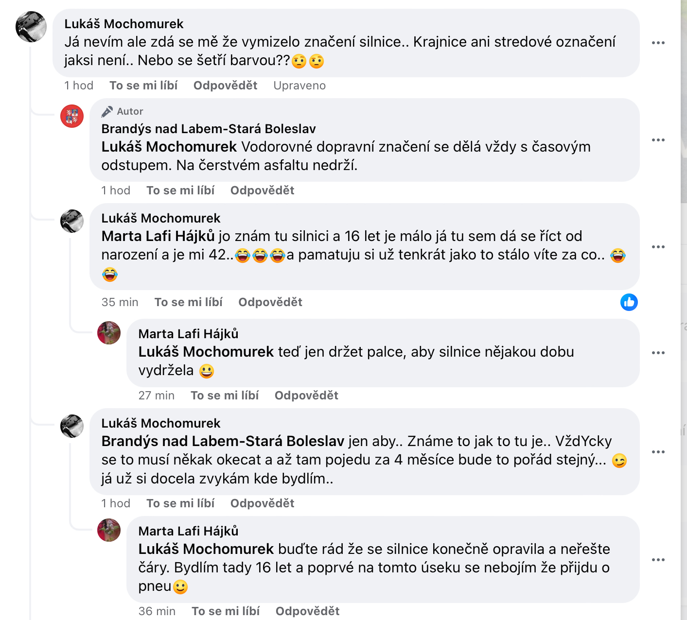 V pátek jsme otevřeli opravenou silnici Lesní a 5. května . Když v silnici neřešíte nic jiného, než povrchy, jde to raz dva… :) A ohlasy obyvatel? Radost pro ně silnice opravovat :)