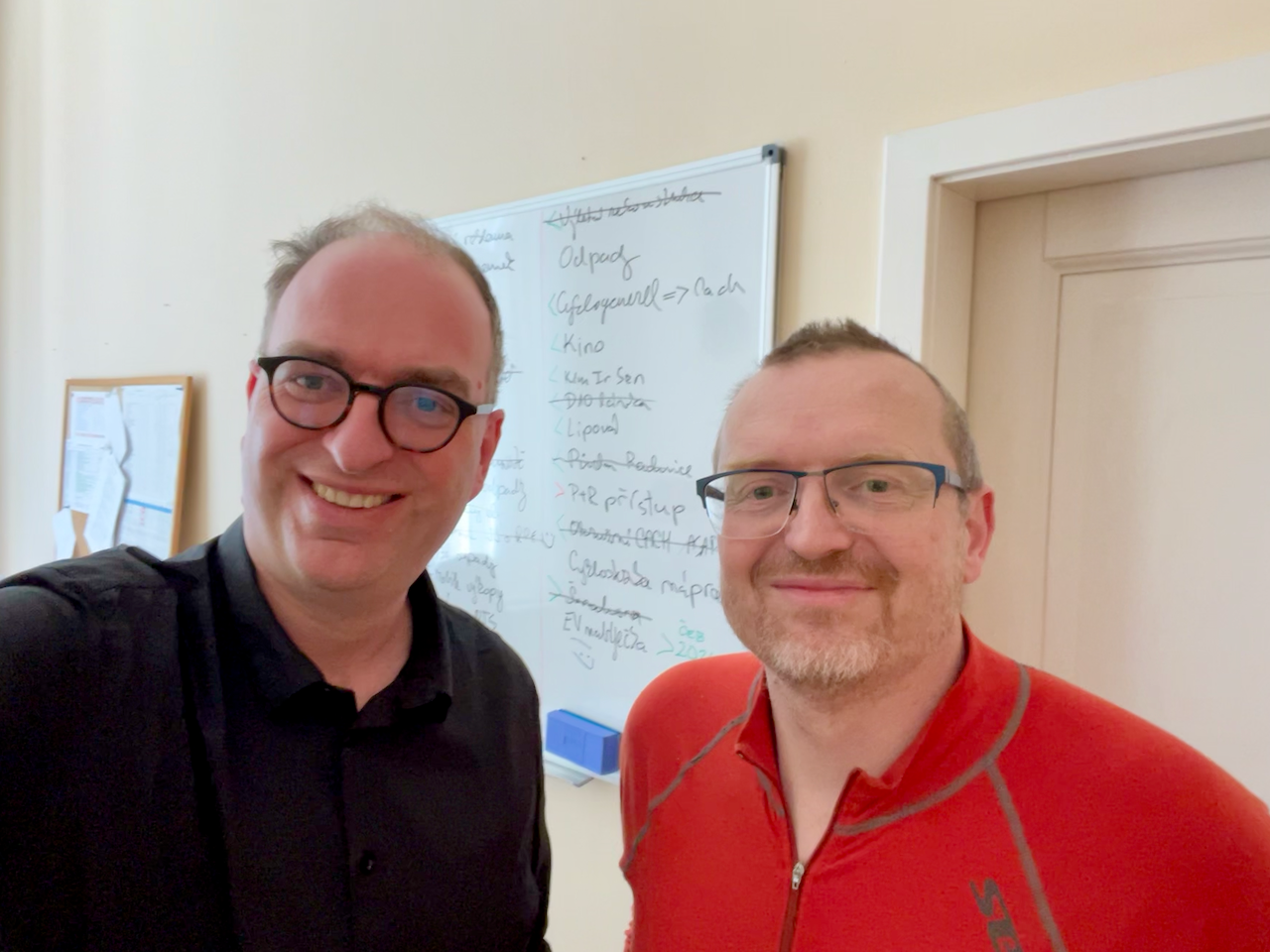 Na závěr foto z milé návštěvy ve středu: Michal Bláha z Hlídače státu dorazil , abychom si popovídali o otevřených datech (trochu s nimi zápolíme) a také o možnostech, jak porovnávat mezi obcemi ceny prací a nenechat se dodavateli natáhnout.