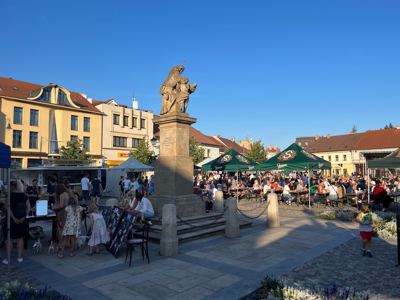 Náměstí se i přes vedro slušně zaplnilo, hrálo se do noci.