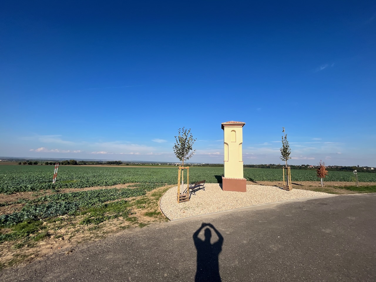 💒 Začneme u sousedů. Cvrčovičtí zrekonstruovali křížek na hranici s našimi Popovicemi. Nově je tu lavička a za jasného dne nádherný pohled na baziliku a naše město. Moc povedené!