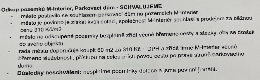2️⃣ Druhým bodem bylo úspěšné jednání s jedním z developerů , kteří rozjeli větší stavební projekt a přitom se díky minulému vedení vyhnuli většímu příspěvku do obecní poklady. Nám se nakonec po dlouhém jednání podařilo příspěvek zdvojnásobit, z patnácti na třicet milionů, což byla především zásluha místostarosty Jana Jirovského a právníků. Schvalovala se smlouva, která obsahovala především toto finanční navýšení. Jak se asi Honza musel cítit, když mu opoziční zastupitel vesele vpálil do obličeje, že on doufal v pětatřicet a rozhodně by na těch třicet smlouvu uzavřel taky - když na té jeho smlouvě bylo patnáct?