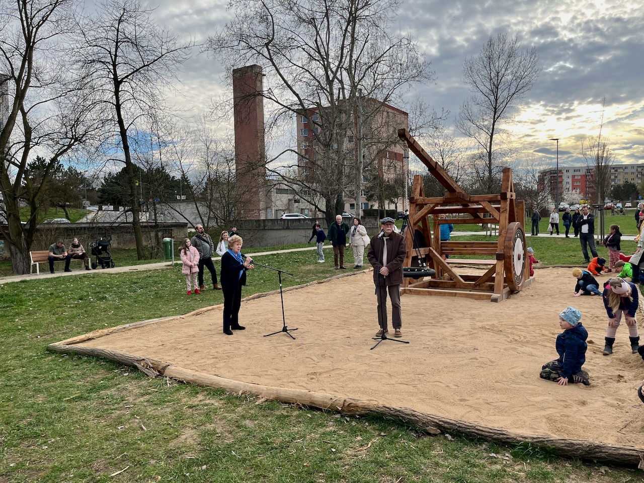 🏹V pátek se slavnostně otevíral Čakovický prak v Central Parku . Je to akce, kterou do participativního rozpočtu přinesli manželé Materna, do realizace ji dotlačil Petr Čeněk. Je to připomínka praku, jímž se v Cimrmanově hře Akt střílelo na Čakovice. Petr Čeněk k tomu udělal hezkou a důstojnou akci, prak se pokřtil a nyní slouží jako lavička, houpačka a vzpomínkové místo na Cimrmana a jeho brandýské působení. Přijďte pobejt. Mě jen bylo líto, že někoho napadlo rozrýpat kůru z kmínků ohraničujících pískoviště jen pár dnů po dohotovení.