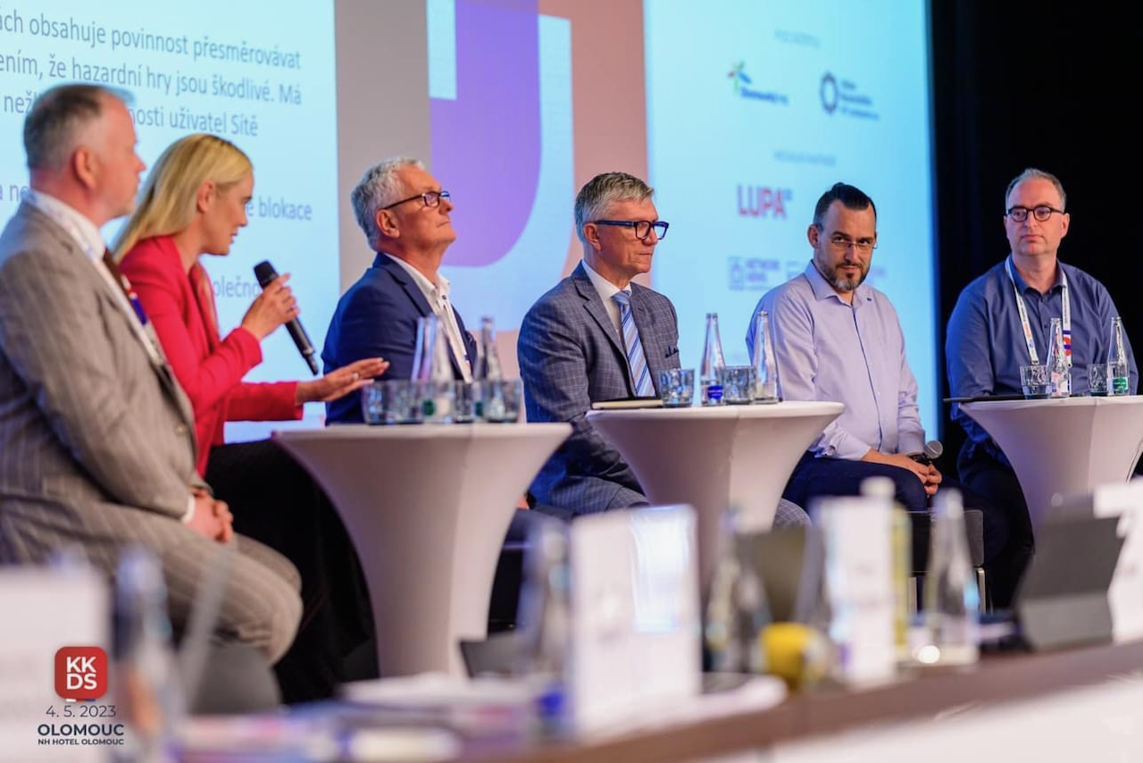Momentka z diskusního panelu na KKTS. Já zcela vpravo, lídry českých telekomunikací jistě poznáte… Pro jistotu zleva poslanec Robert Králíček, Tereza Rychtaříková (představenstvo hospodářské komory ČR), předseda ČTÚ Marek Ebert, viceprezident hospodářské komory Zdeněk Zajíček a z CESNETu Jan Kolouch.